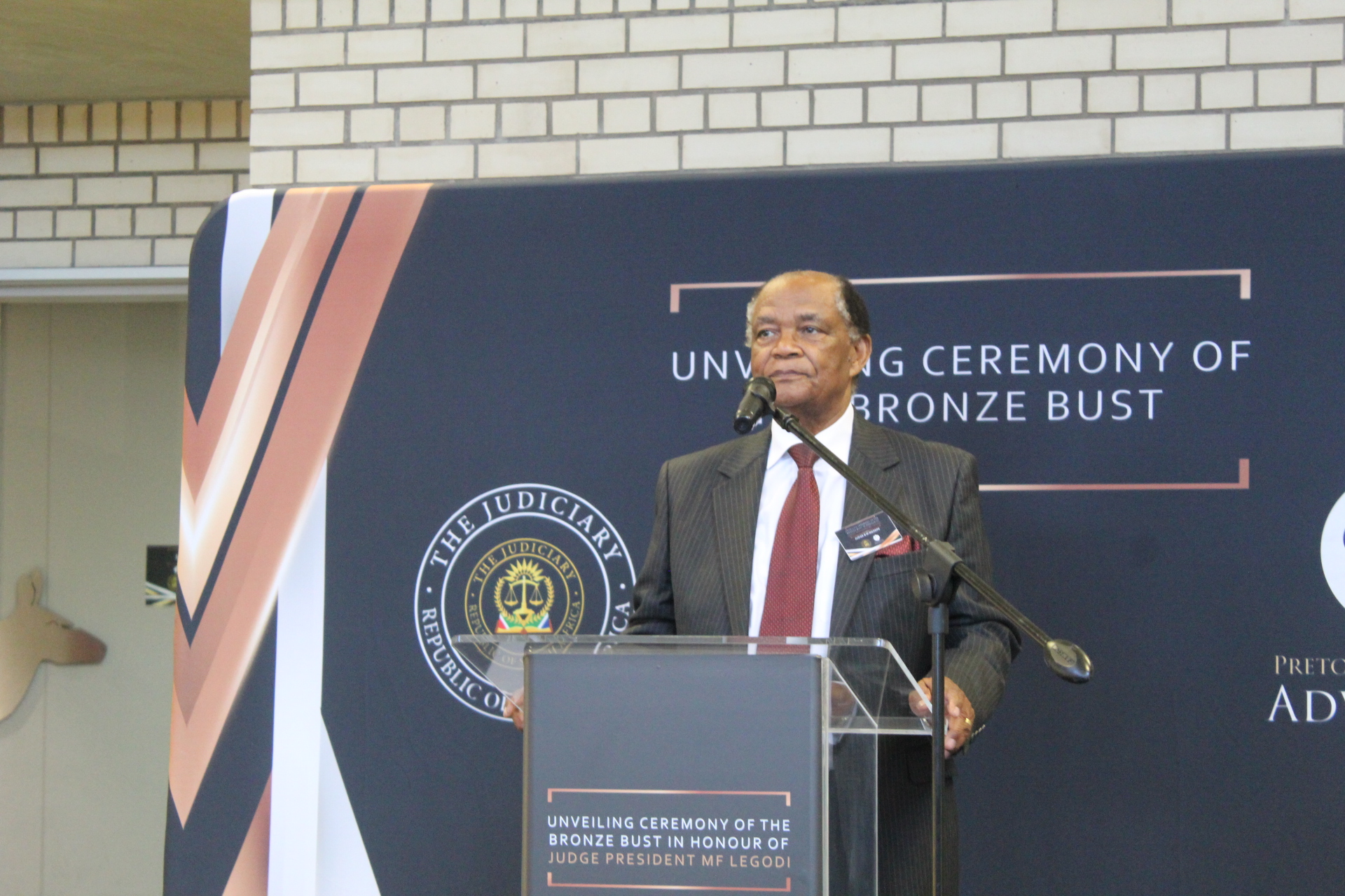 ‘n Bronsbeeld van Francis Legodi, die regterpresident van die Mpumalanga afdeling van die Hooggeregshof, is gister by die Mpumalanga Hooggeregshof in Mbombela onthul.