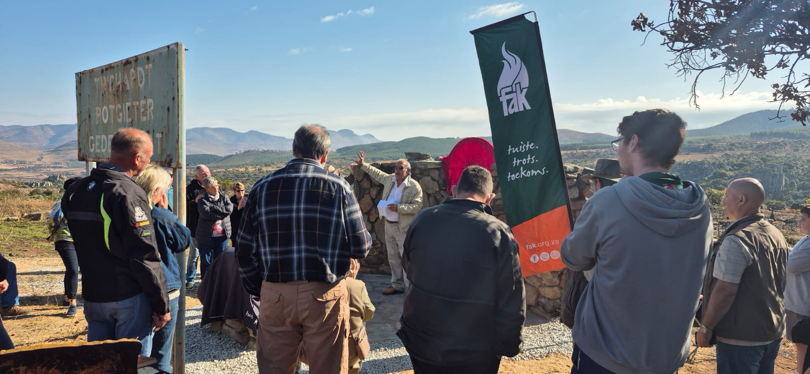 Die gevandaliseerde Trichard-Potgieter-Monument op die R532, noord van Graskop tussen God’s Window en Bourke’s Luck, is deur die FAK tot sy eertydse glorie herstel en op Saterdag weer onthul.