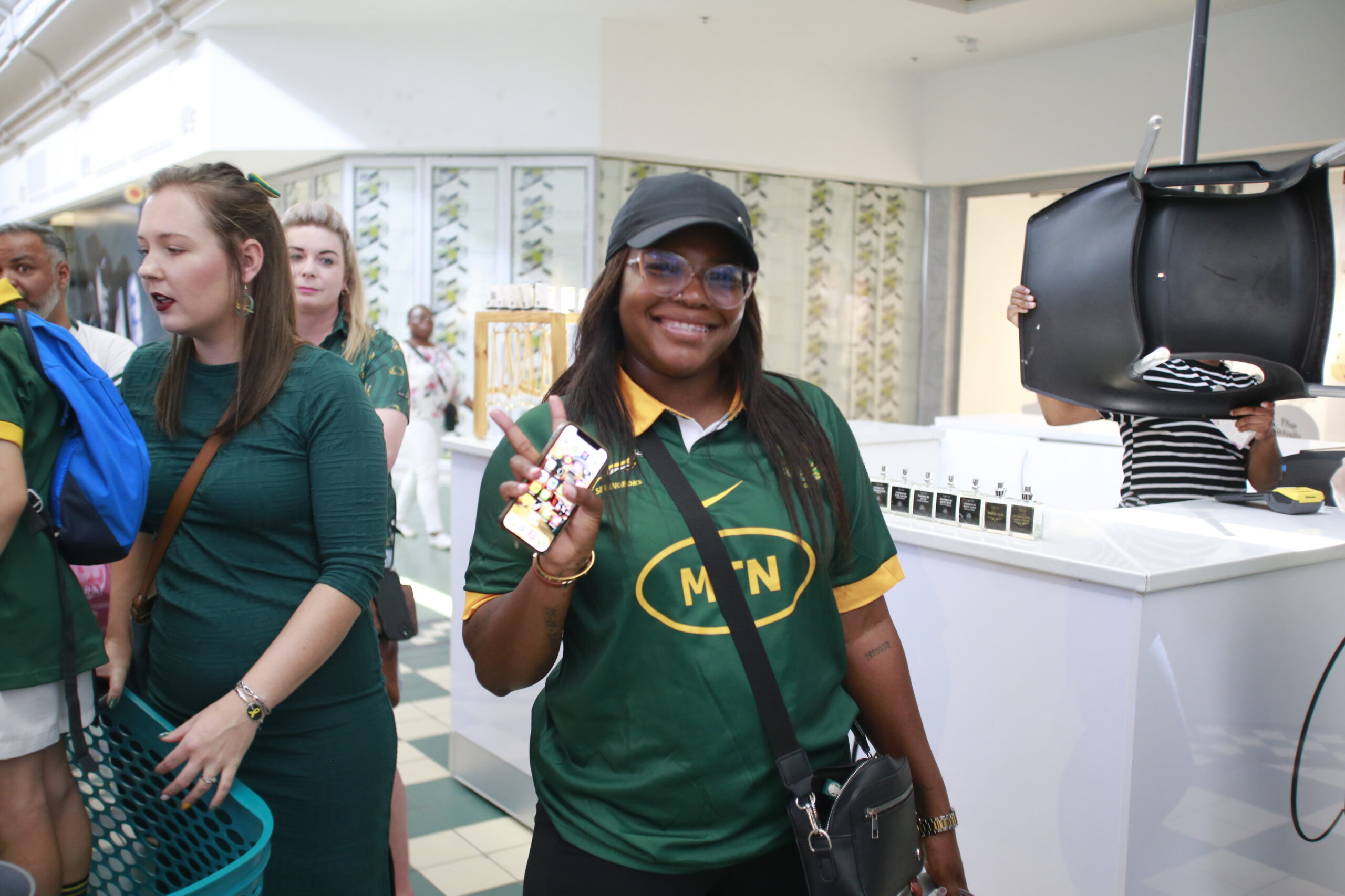 Springbok-ondersteuners kon gister by Riverside Mall hul foto neem saam met Bok-spelers én die Wêreldbeker-trofee.