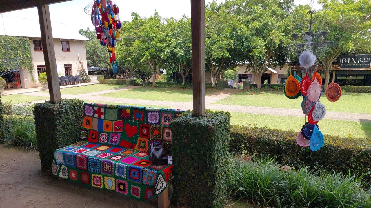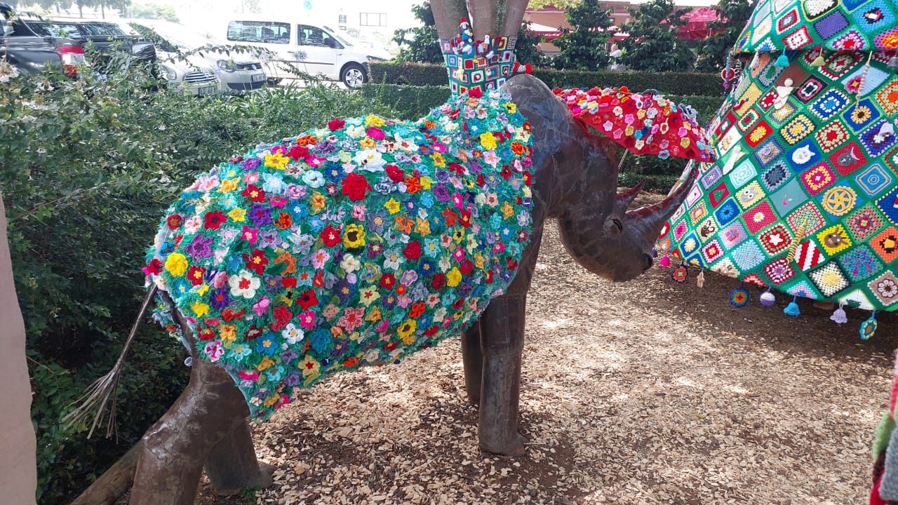 Die KnitWits van 67 komberse vir Mandela-dag in Witrivier het Saterdag hul gehekelde Kersboom van meer as 6 m by Casterbridge onthul.