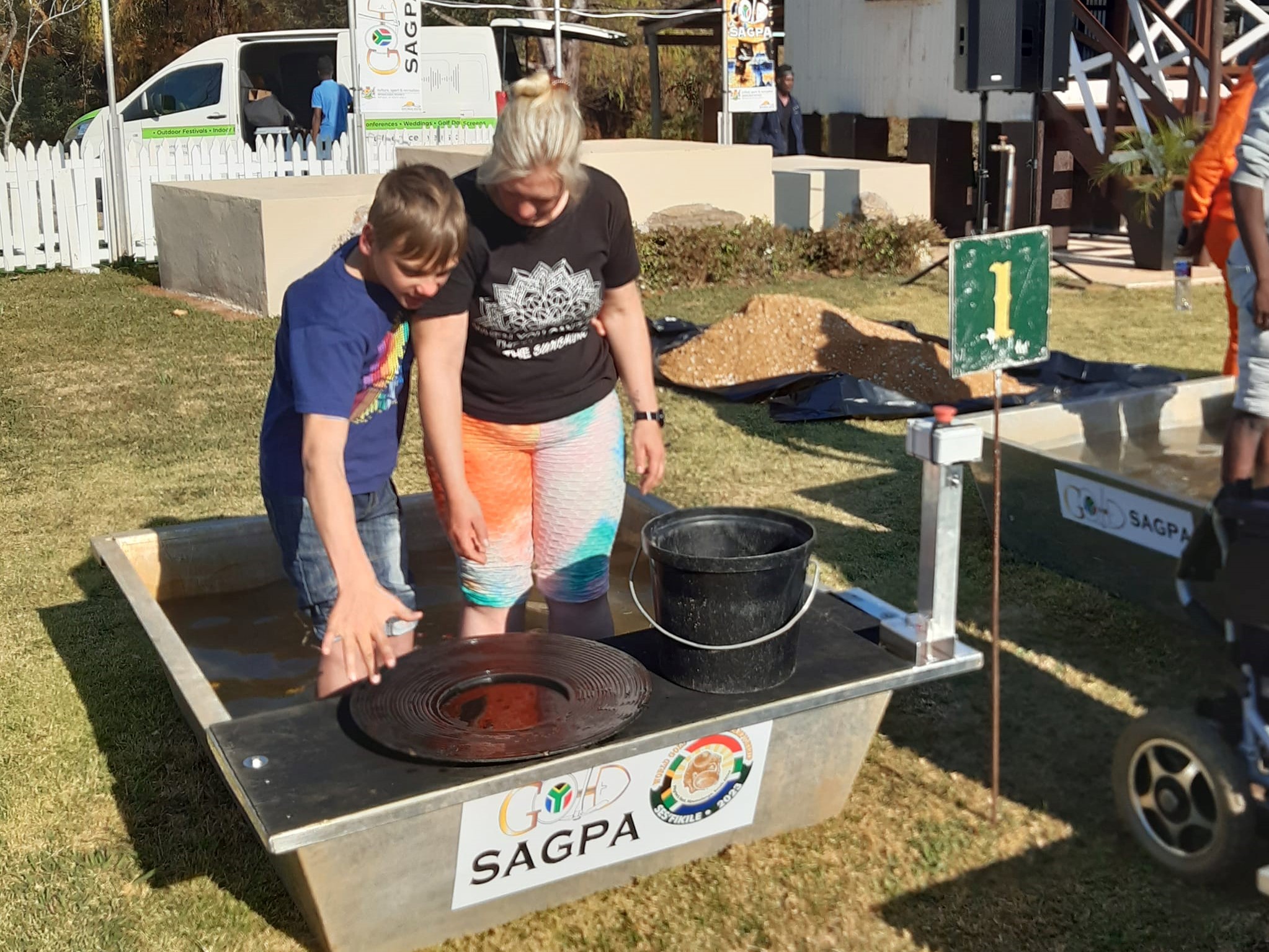 Deelnemers met gestremdhede het die geleentheid gehad om goud te pan.