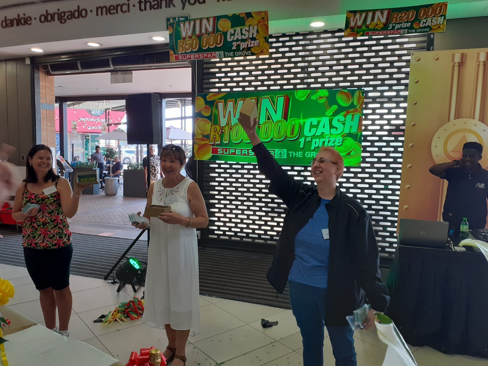 Rose-Mare Pretorius was die gelukkige wenner van R100 000 kontant vanoggend by Grove SUPERSPAR.