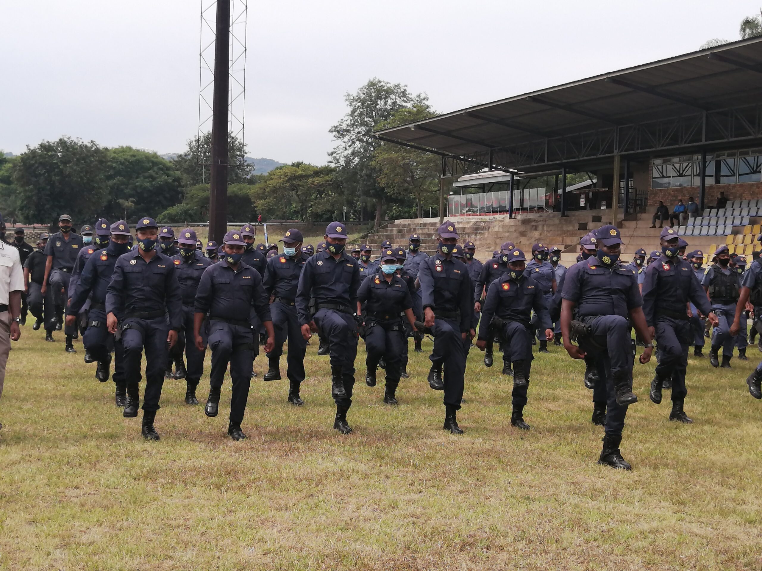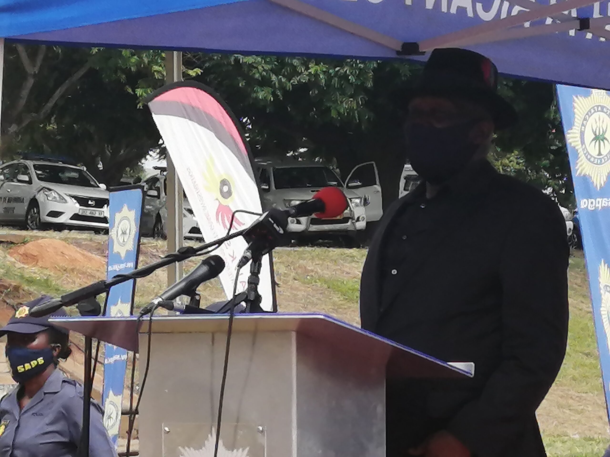 Hy het wetstoepassers vanoggend by die Nelspruit-rugbyklub toegespreek. Hy is deur onder meer die adjunkminister van polisie, Cassel Charlie Mathale, en provinsiale polisiekomissaris, luit. gen. Modli Zuma, vergesel.