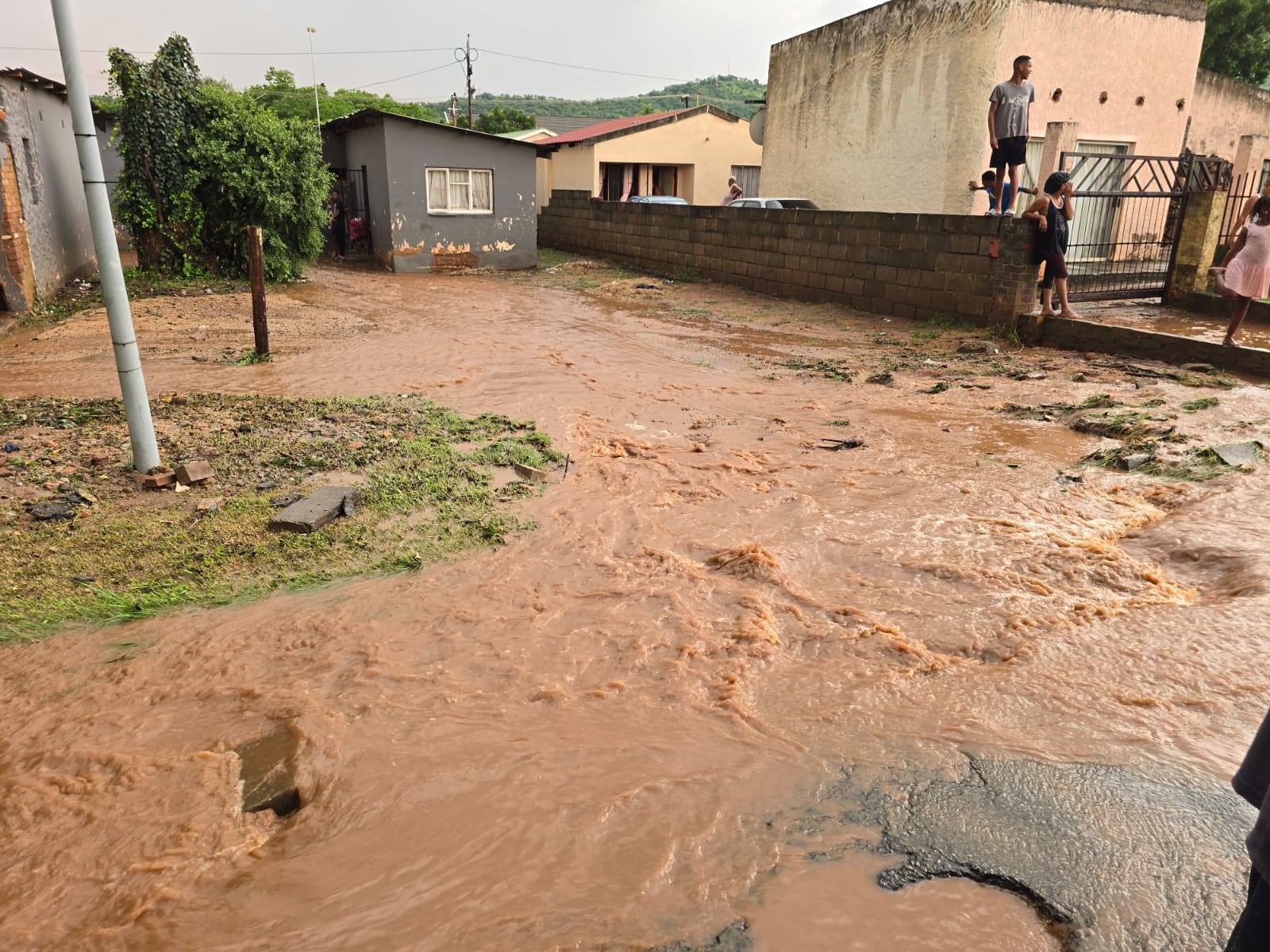 Die amper 80 mm wat binne so ‘n halfuur geval het, het ook stormwaterdreine oorweldig.
