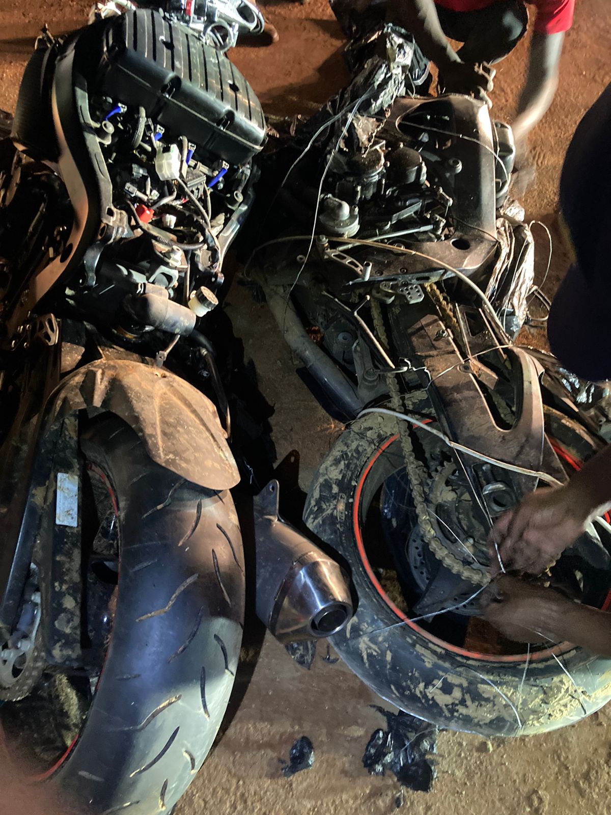 Saterdagaand laat is drie mense, van tussen 31 en 47 jaar oud, aangekeer toe die Toyota Quantum minibus met ‘n waentjie waarin hulle passasiers was tussen KaNyamazane en Matsulu afgetrek en deursoek is. Motorfietse en onderdele is gevind en die drie het glo erken dit is hul bagasie.