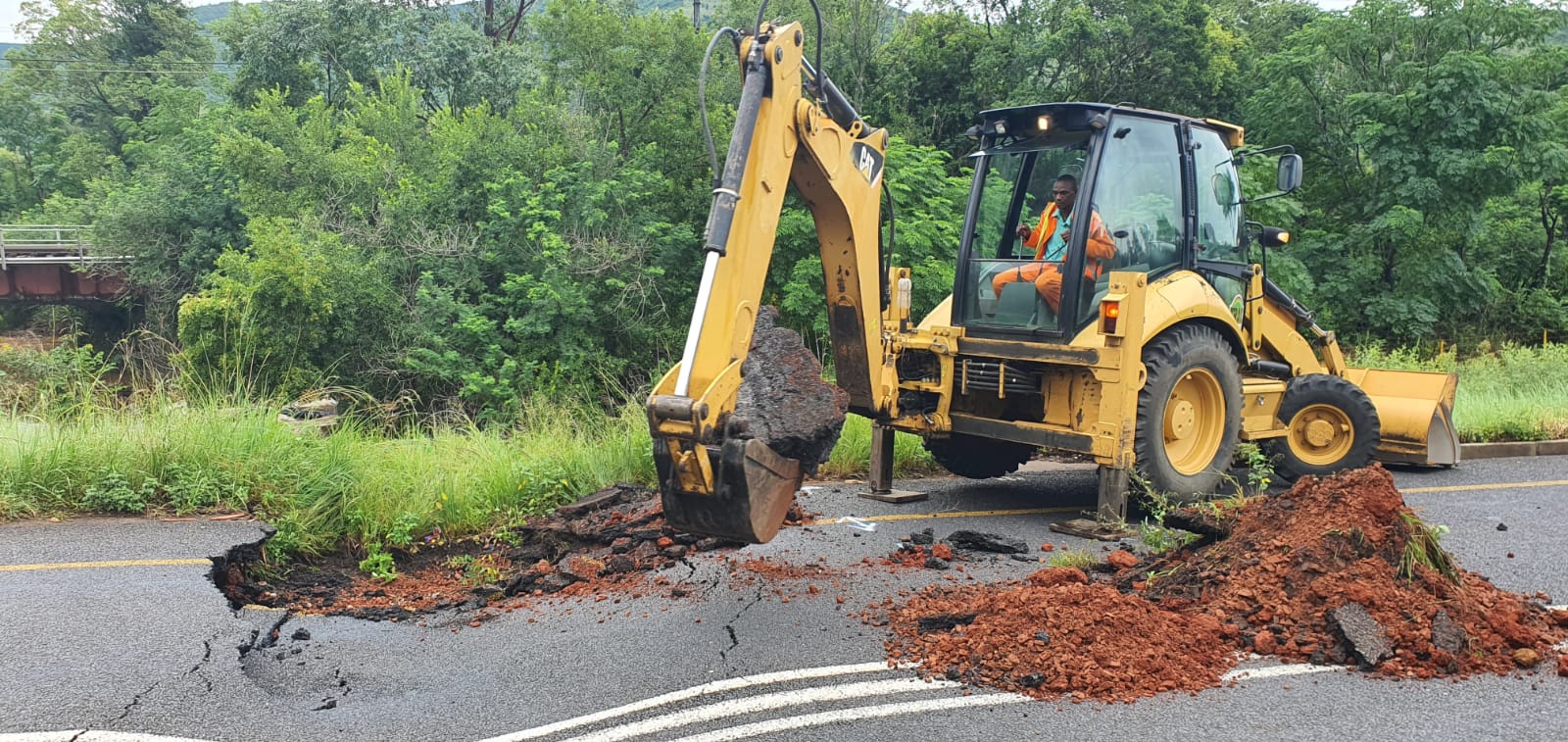 “’n Stroompie wat onderdeur die pad loop het na die swaar reën Sondag oorstroom en materiaal onder die padoppervlak weggespoel.”